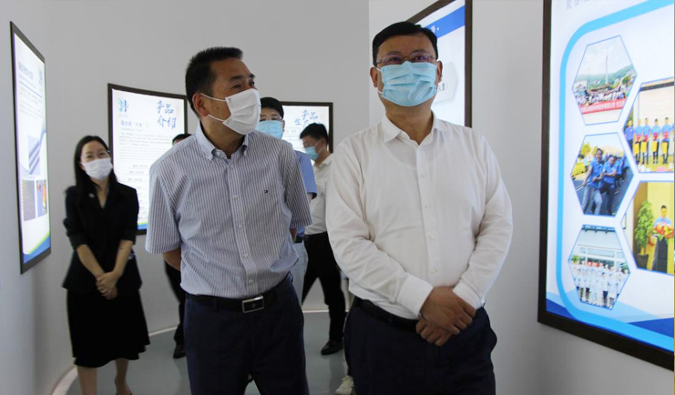 金書記一行參觀企業(yè)展廳中心時,詳細了解我司技術(shù)創(chuàng)新、產(chǎn)品應(yīng)用、市場推廣和產(chǎn)業(yè)鏈動態(tài)等情況,仔細詢問企業(yè)當(dāng)前防疫措施和今后發(fā)展規(guī)劃等問題。